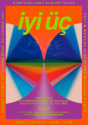 あさざけ(カナミネケイタロウ 、浮、フレディ塚本)、サラーム海上、moppy、Cem Kayiran と豪華出演陣で iyi üç(イイ3)開催です。